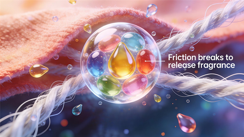 • Высокотемпературная стабильность:Традиционные ароматы сильно портятся после высокотемпературных процессов отделки, таких как сушка или глажка. Внешняя стенка Encapsulated Fragrance обеспечивает превосходную стойкость к обработке, сохраняя стабильность аромата даже в условиях высокой температуры;