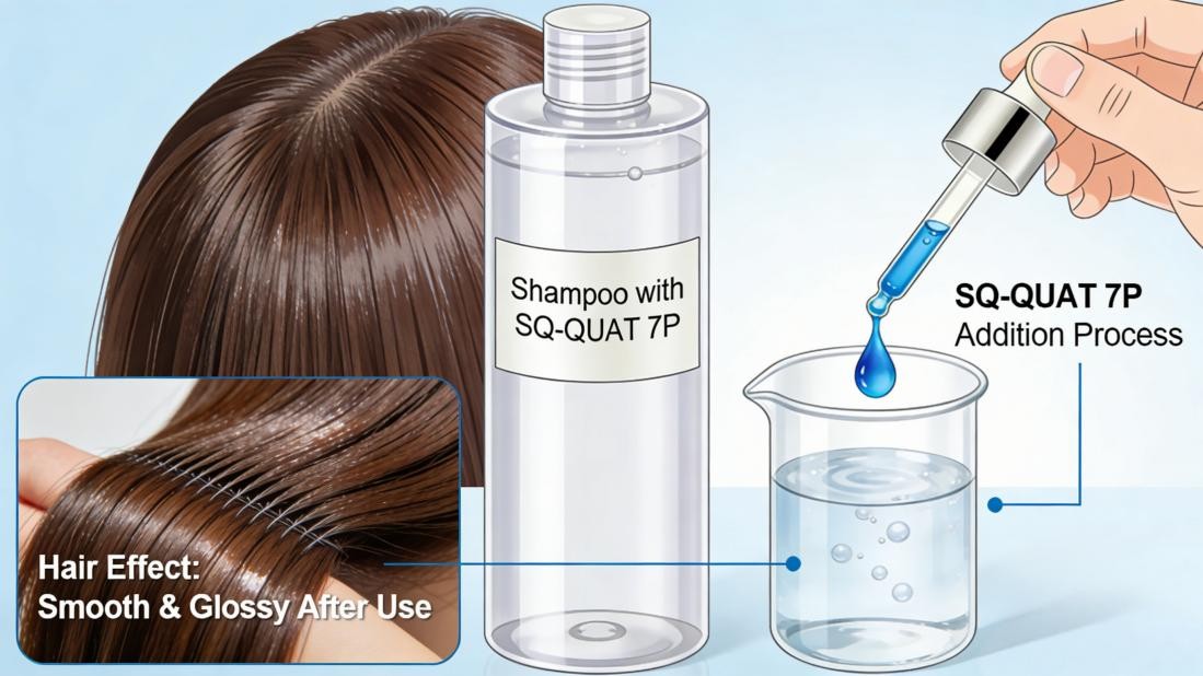Интеграция SQ-QUAT 7P в рецептуры шампуней означает, что профессиональный кондиционирующий уход начинается с самого первого этапа очищения.